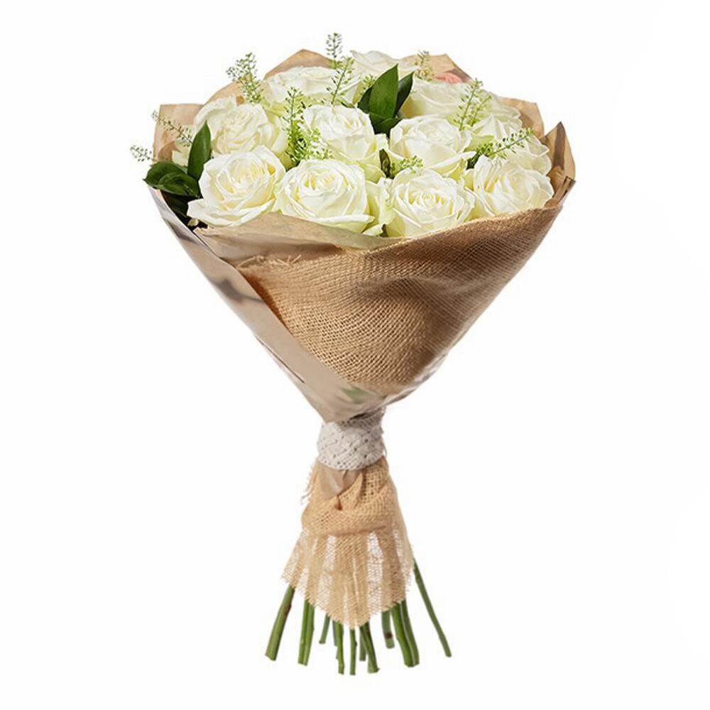бумага крафт – 1 шт.роза белый – 15 шт.лента атласная (белый) – 1 шт.