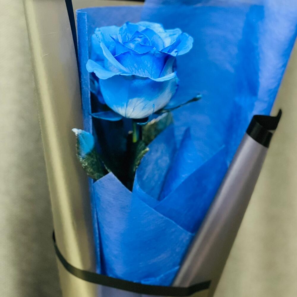 Атласная лента – 1 шт.Синяя роза – 1 шт.Матовая упаковка – 1 шт.