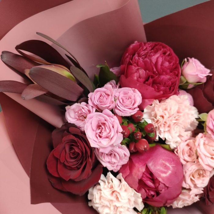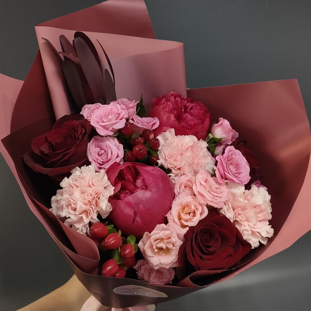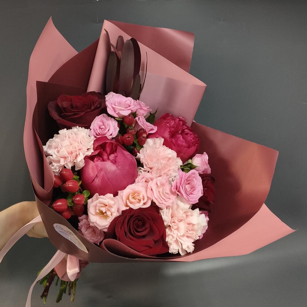 Букет из кустовых пионовидных роз Мадам Бомбастик