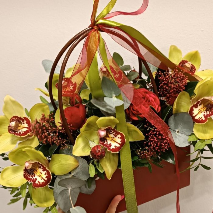 Элегантная сумочка в осенней гамме со стойкой орхидеей ЦИМБИДИУМ