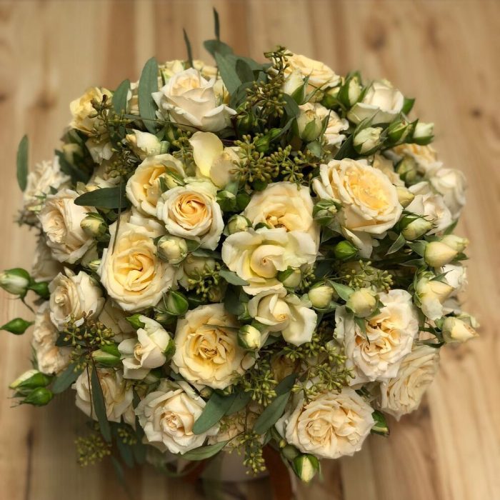 “Эвкалиптическая роскошь” гортензия и пионовидная кустовая роза