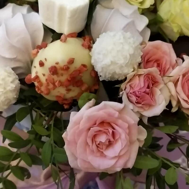 Вкусный букет “Яркая мечта” Клубника в шоколаде и розы
