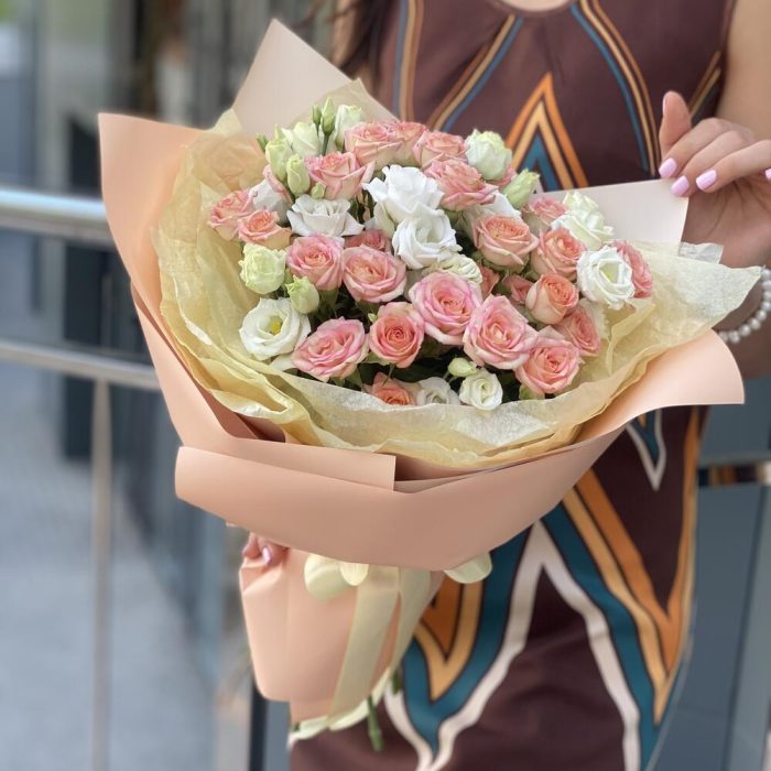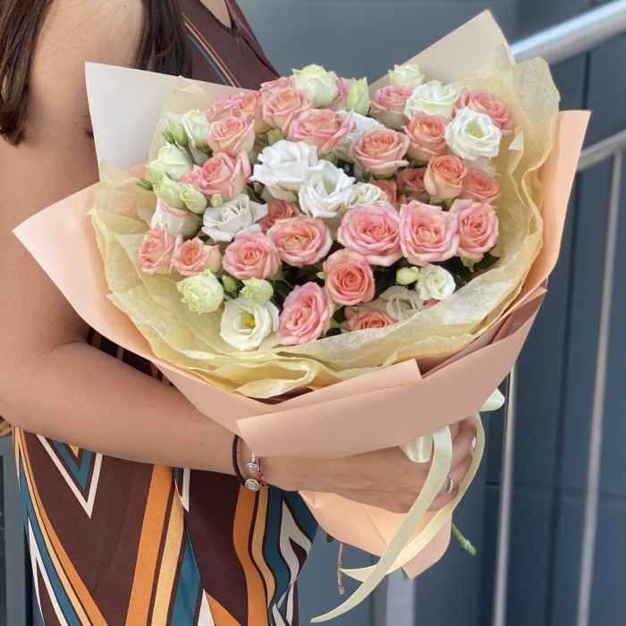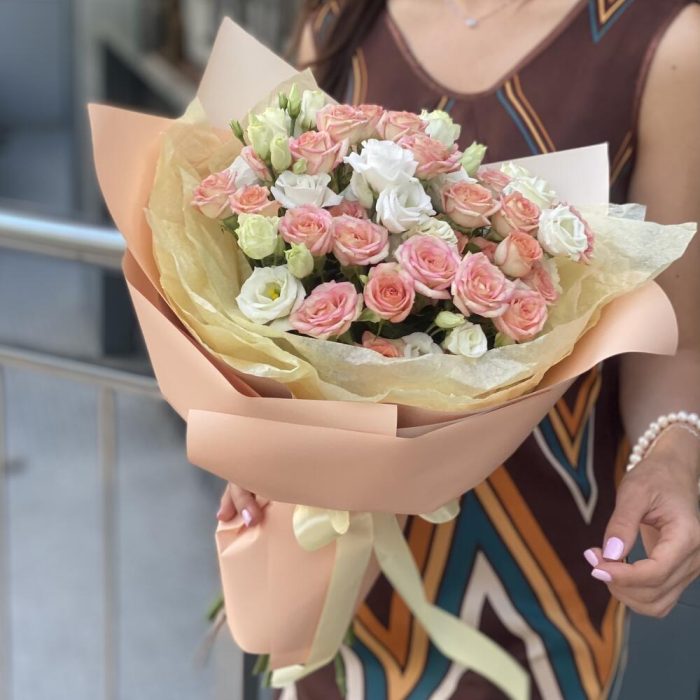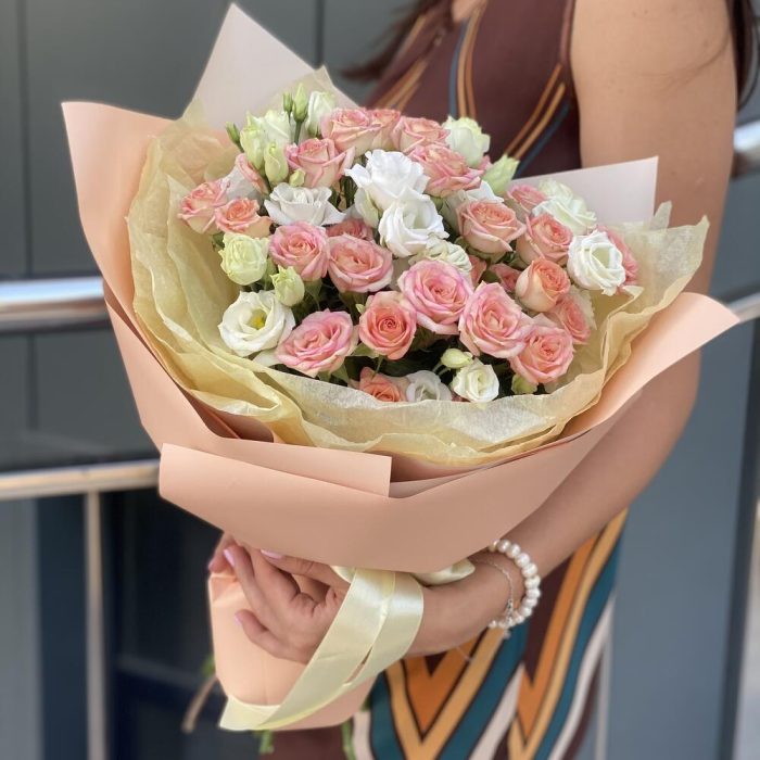 Букет из кустовых роз и эустомы!
