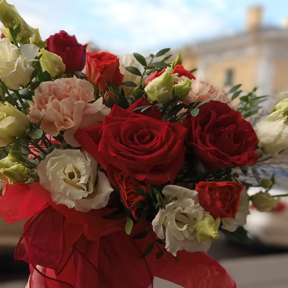 Категорий: Гвоздики, Кустовые розы, Лизиантусы, Розы, Сухоцвет