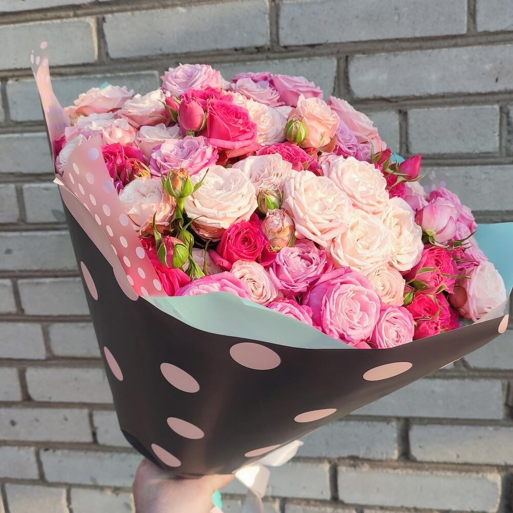 Гвоздики, Кустовые розы, Лизиантусы, Пионовидные розы, Розы