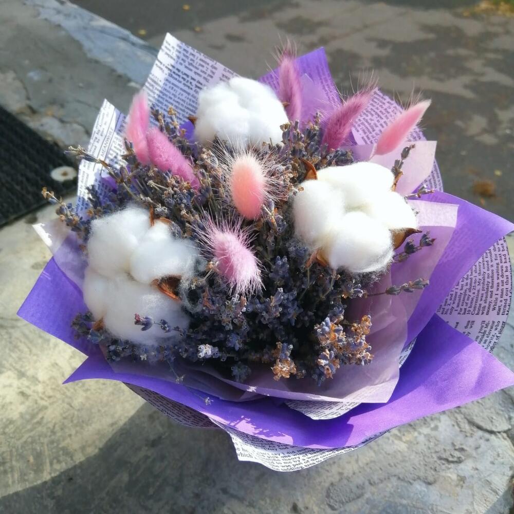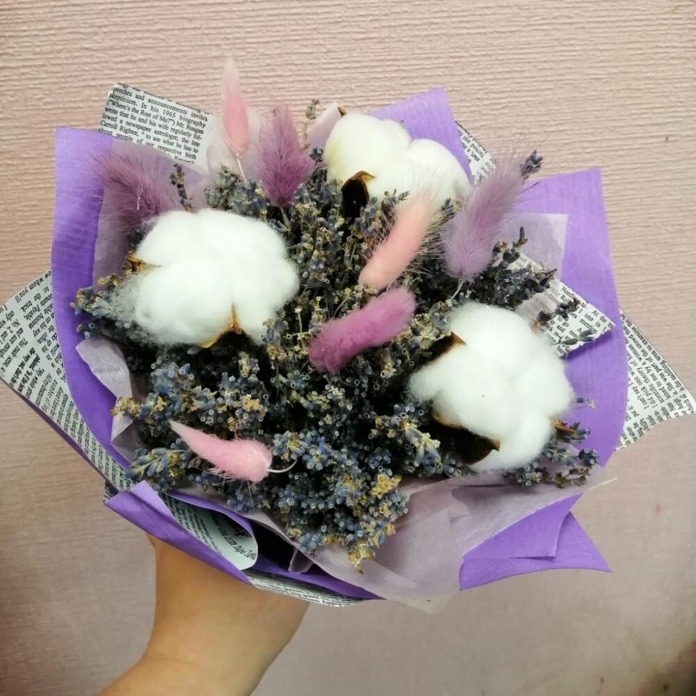 Букет из сухоцветов Лаванда с хлопком
