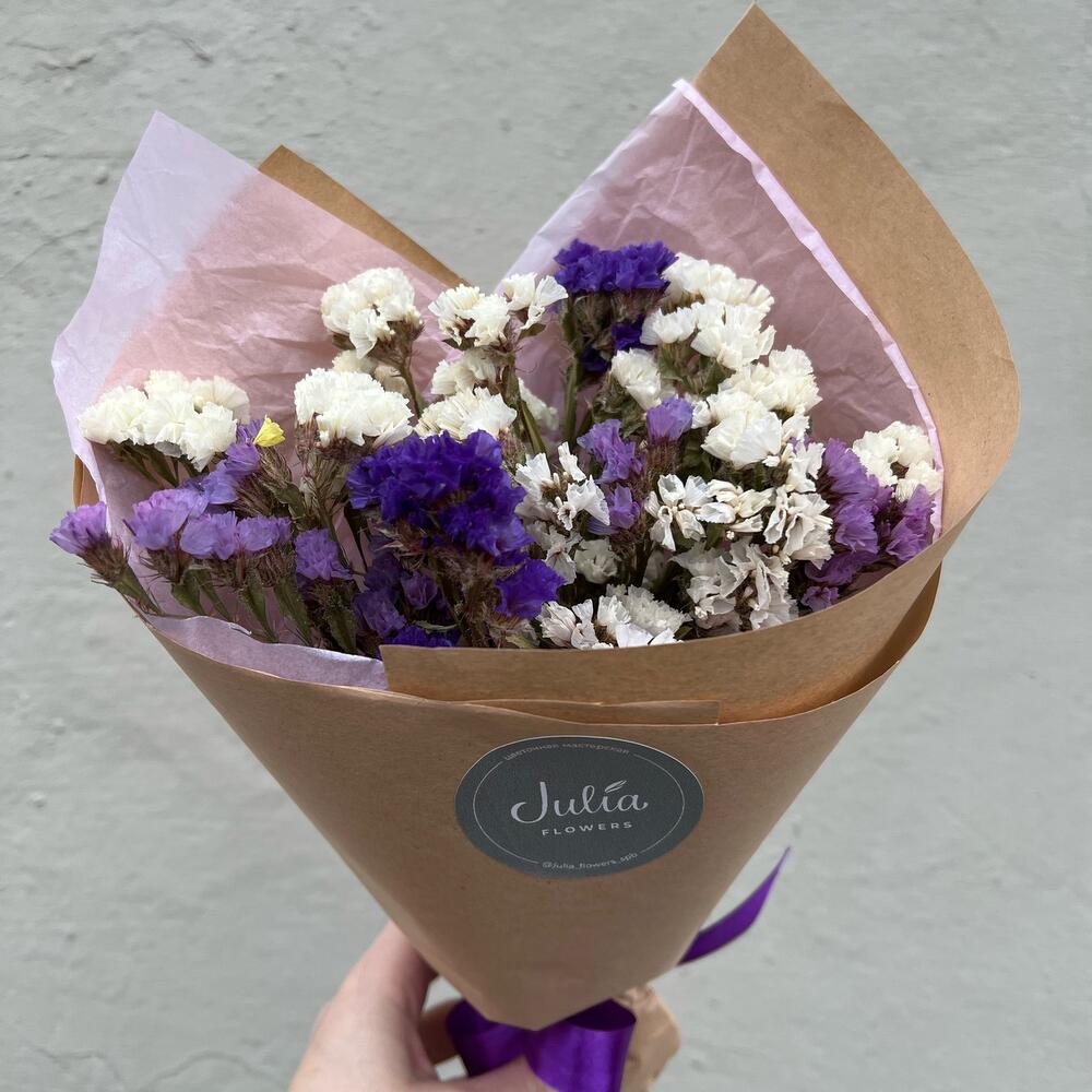 «Лавандовое созвездие» Букет из розы, гвоздики, статица и хлопка