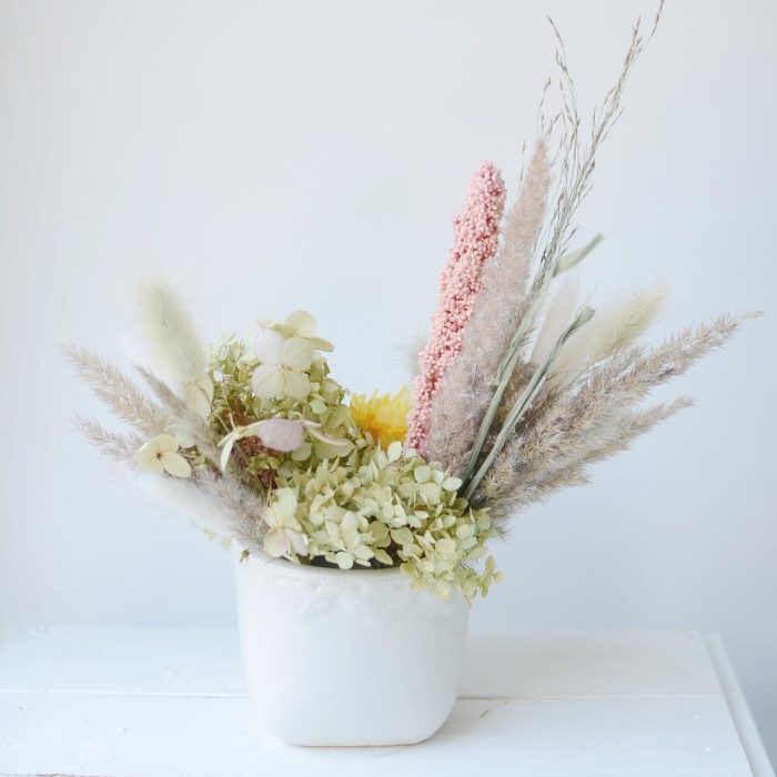 Интерьерная композиция из стабилизированных цветов и сухоцветов