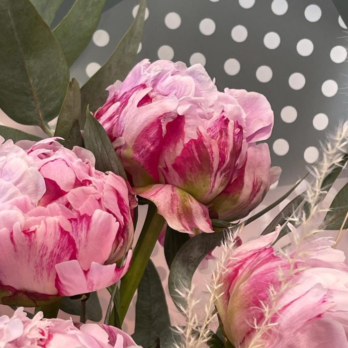 Пион – 7 шт.Лагурус – 5 шт.Эвкалипт – 1 шт.пампасная трава (сухоцвет) – 1 шт.Упаковка дизайнерская – 1 шт.Лента – 1 шт.