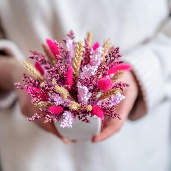 Лимониум – 1 шт.Кашпо керамическое – 1 шт.Тритикале – 1 шт.Лагурус (сухоцвет) – 1 шт.батао пуговки сухоцвет – 1 шт.сорго – 1 шт.