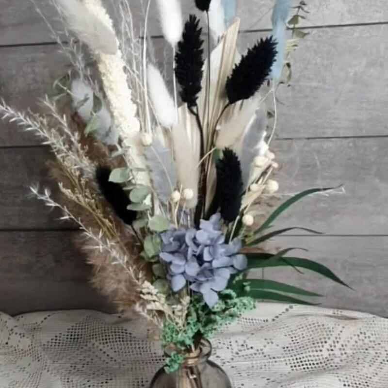 Композиция из сухоцветов и стабилизированных цветов в вазе