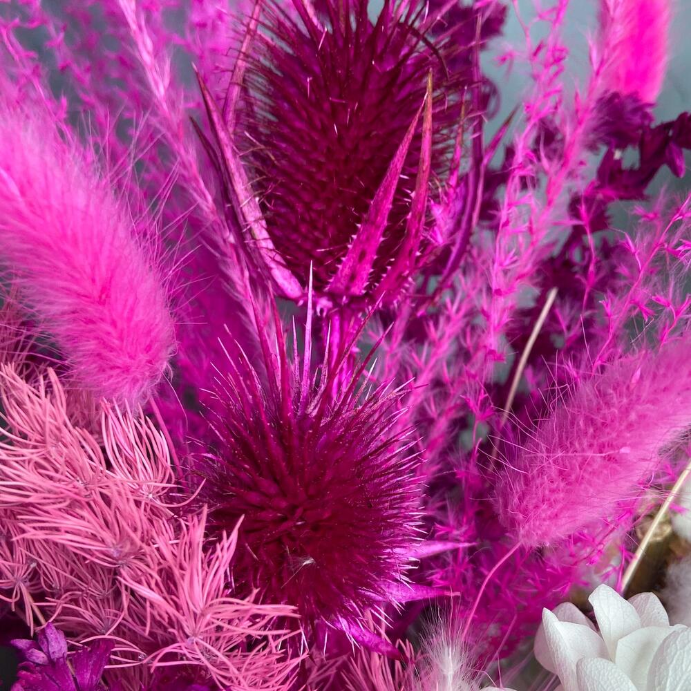 Композиция из сухоцветов в розовых тонах
