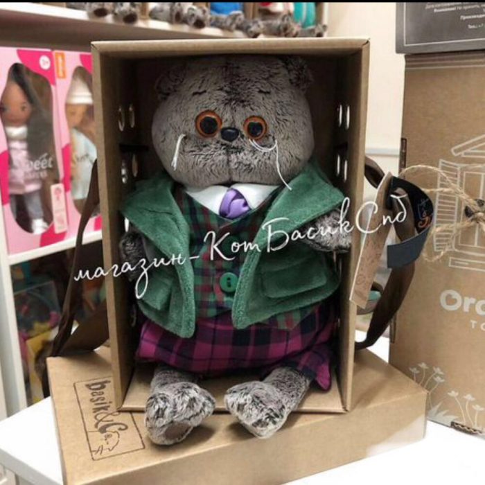 Мягкая игрушка Кот Басик в зеленом бархатном пиджаке 22см