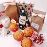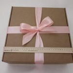 Композиция в коробке с пионами, дельфиниумом и колокольчиками