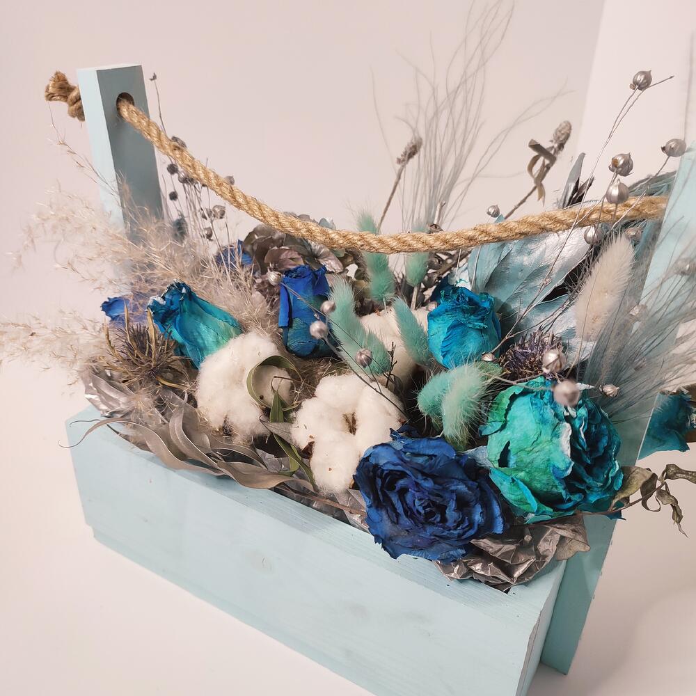 Ящик с сухоцветами(розами, хлопком, протеей, лагурусом)