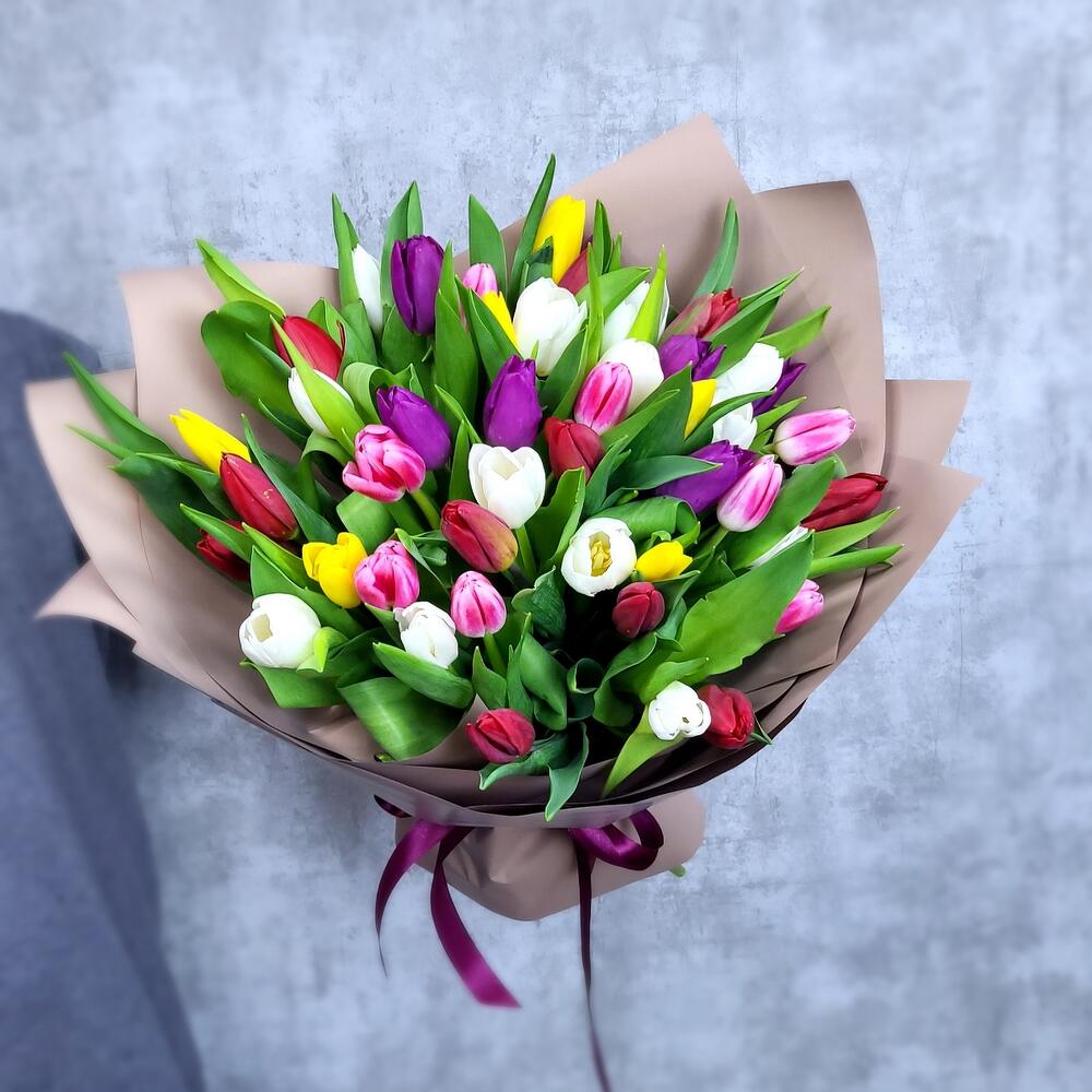 51 разноцветный тюльпан
