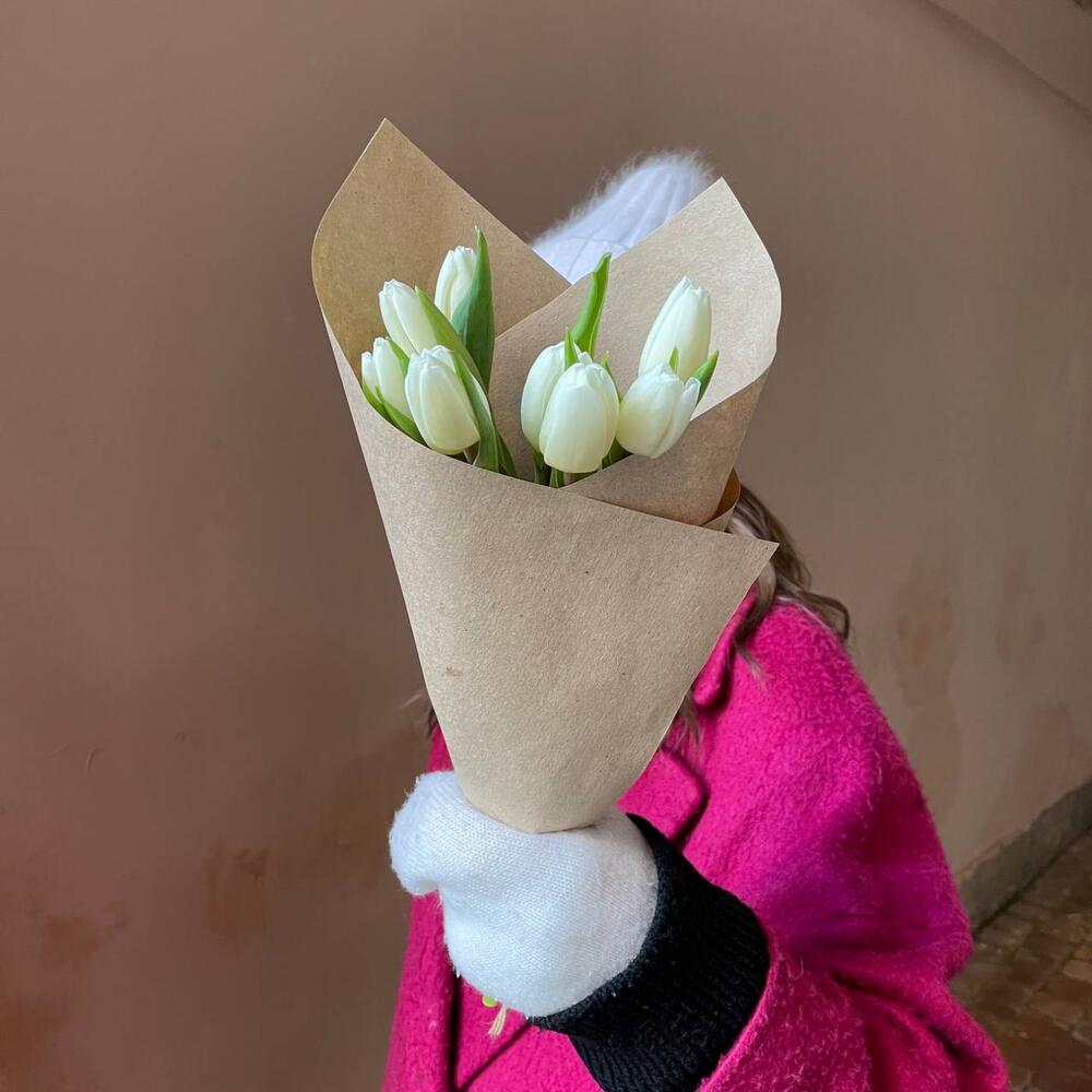 Крафтовая упаковка – 1 шт.Белый тюльпан – 9 шт.