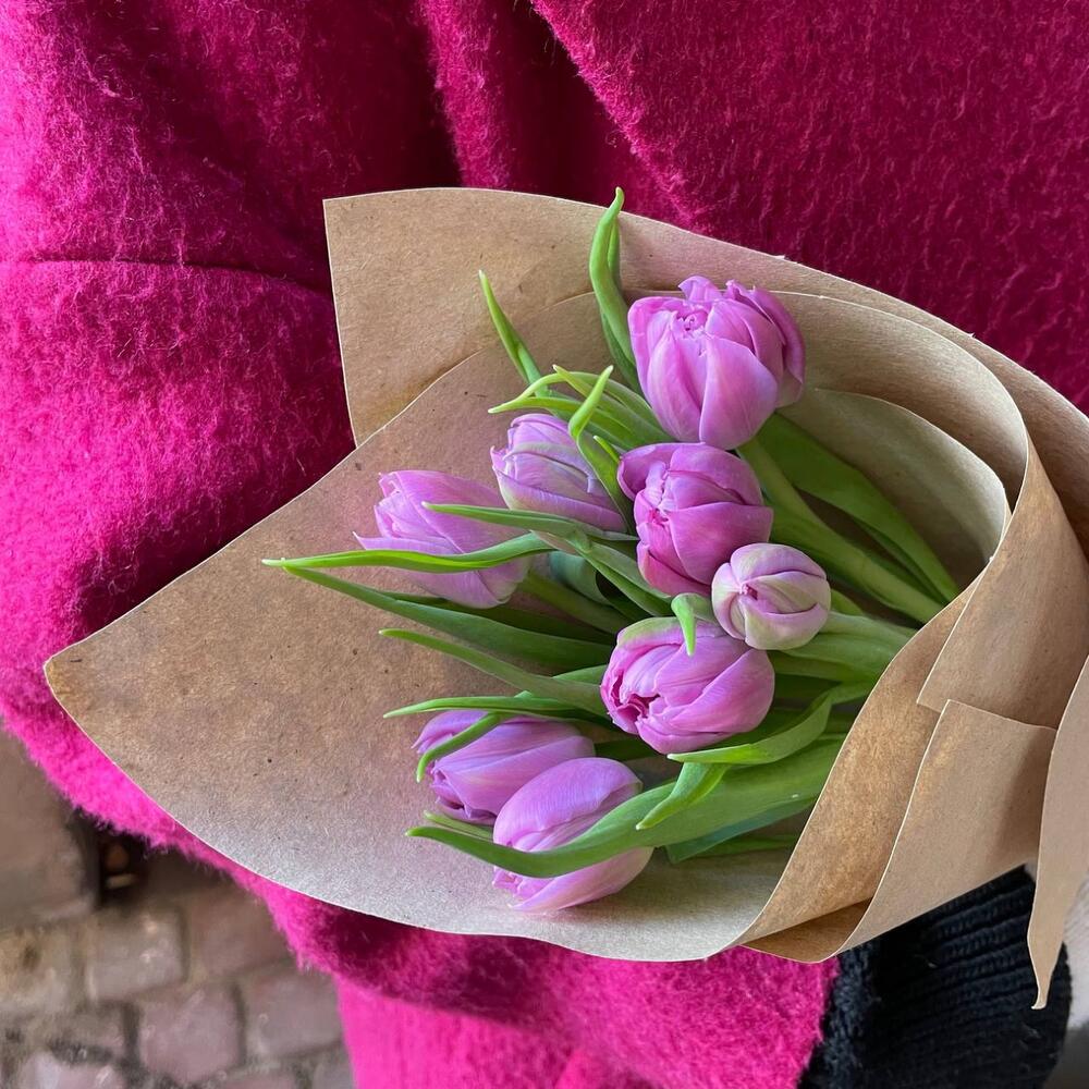 Крафтовая упаковка – 1 шт.сиреневый пионовидный тюльпан – 9 шт.