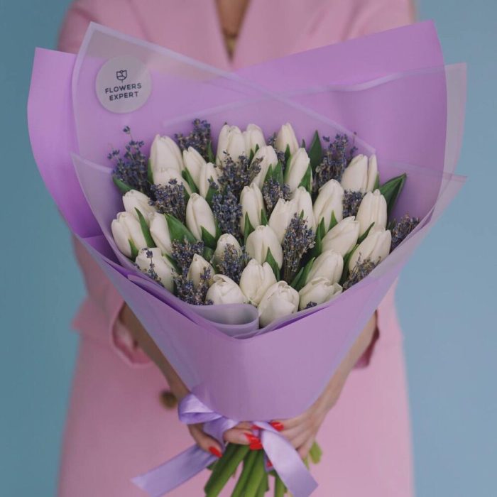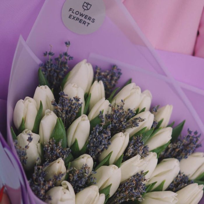 Тюльпан – 31 шт.Лаванда – 25 шт.Упаковка дизайнерская – 1 шт.