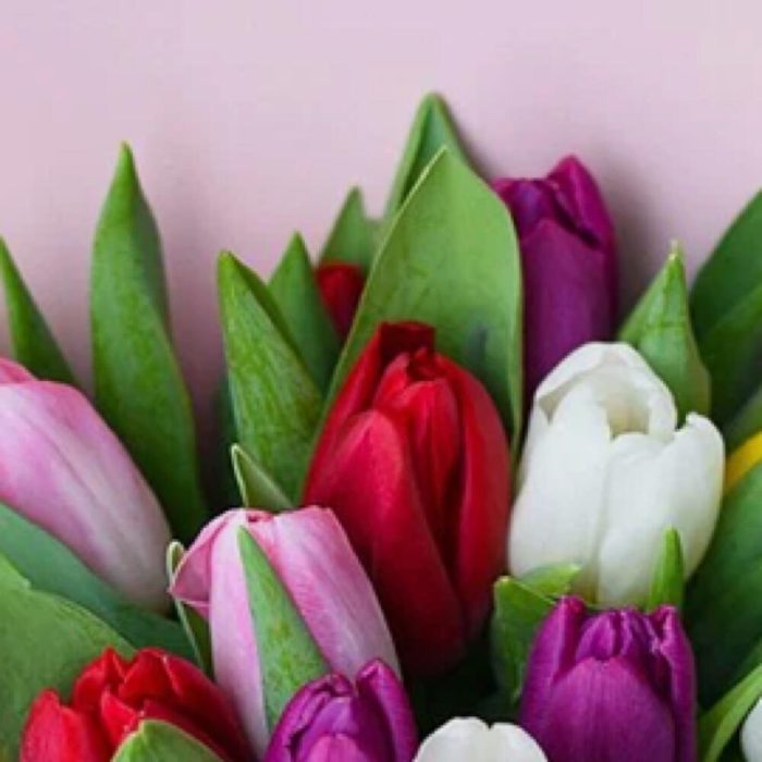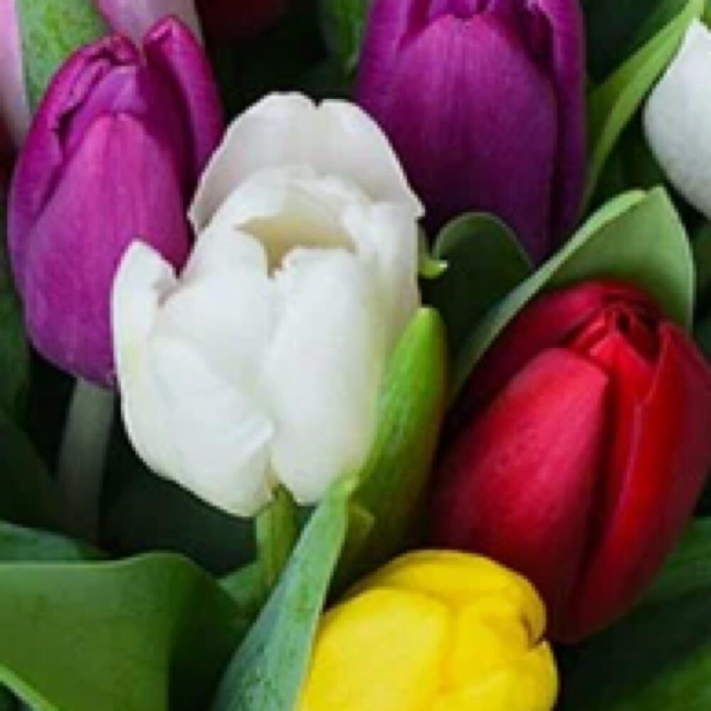 Лента атласная – 1 шт.Упаковка дизайнерская – 3 шт.тюльпаны микс – 15 шт.