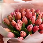 Тюльпан – 51 шт.Упаковка дизайнерская – 2 шт.Лента атласная – 2 шт.Открыточка с вашими пожеланиями – 1 шт.хорошее настроение – 100 шт.инструкция по уходу за цветами – 1 шт.коробка переноска – 1 шт.Кризал – 1 шт.