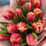 Тюльпан пионовидный – 15 шт.Тишью – 2 шт.Пленка матовая – 2 шт.Лента атласная – 2 шт.