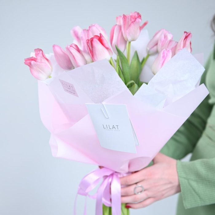 Тюльпан – 15 шт. Упаковка дизайнерская – 1 шт. Открыточка с вашими пожеланиями – 1 шт. инструкция по уходу за цветами – 1 шт.