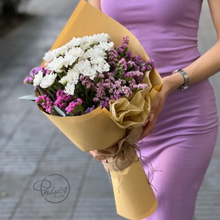 Букет хризантем и лимониумом
