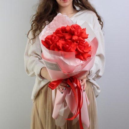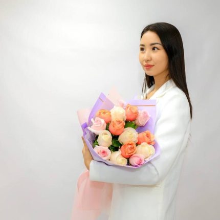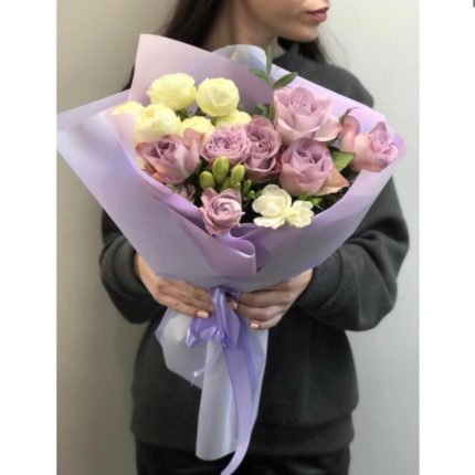 Корзинка Для Мамы из розовых роз и эвкалипта