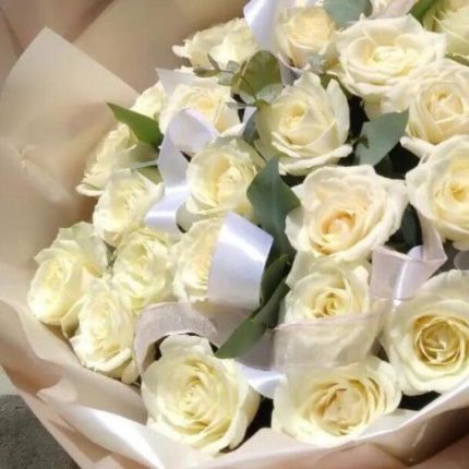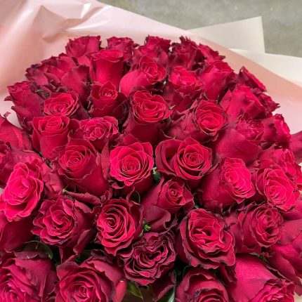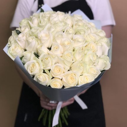 Букет из 51 красной и белой розы микс 35-40 см (Кения) в стильной упаковке