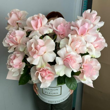 Розы 9 шт в тубусе с гипсофилой и эвкалиптом